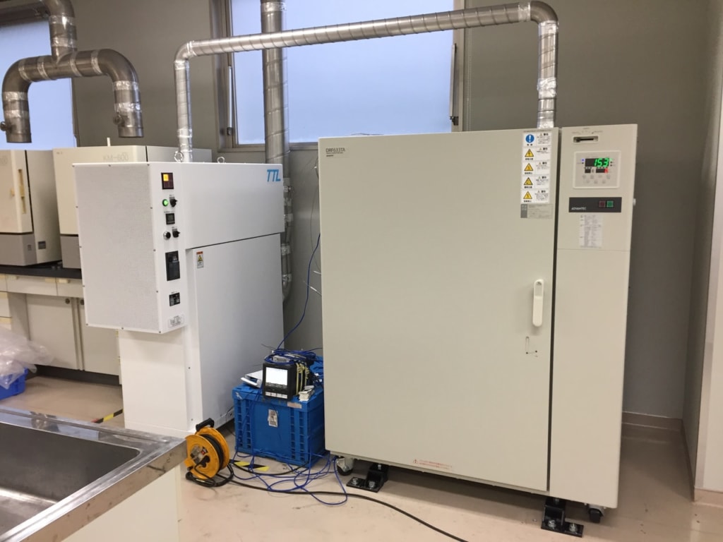 電気炉内で発生した排ガスをそのまま装置内で処理し、クリーンにして外へ出します。 - 電気炉内の温度制御は専用の温度コントローラーを完備しており、昇温プログラム制御も可能です。(炉内 1,000℃ まで設定可能)