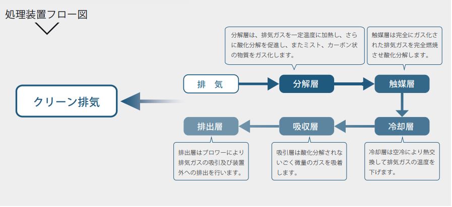 既存装置に後付けで出来る環境対策。燃焼時等における”ニオイ”や ”煙”から作業環境を改善します。